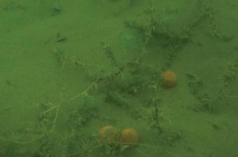 در تصویر سونار یا دوربین زیرآب، تودههای سبز قابل مشاهدهاند