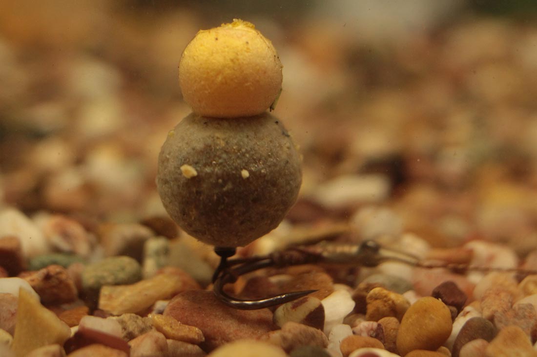 طعمه سنگینتر (Boilie کفخواب) در پایین قرار میگیرد و طعمه شناور روی آن نصب میشود تا مجموعه کمی معلق و سبک شود.